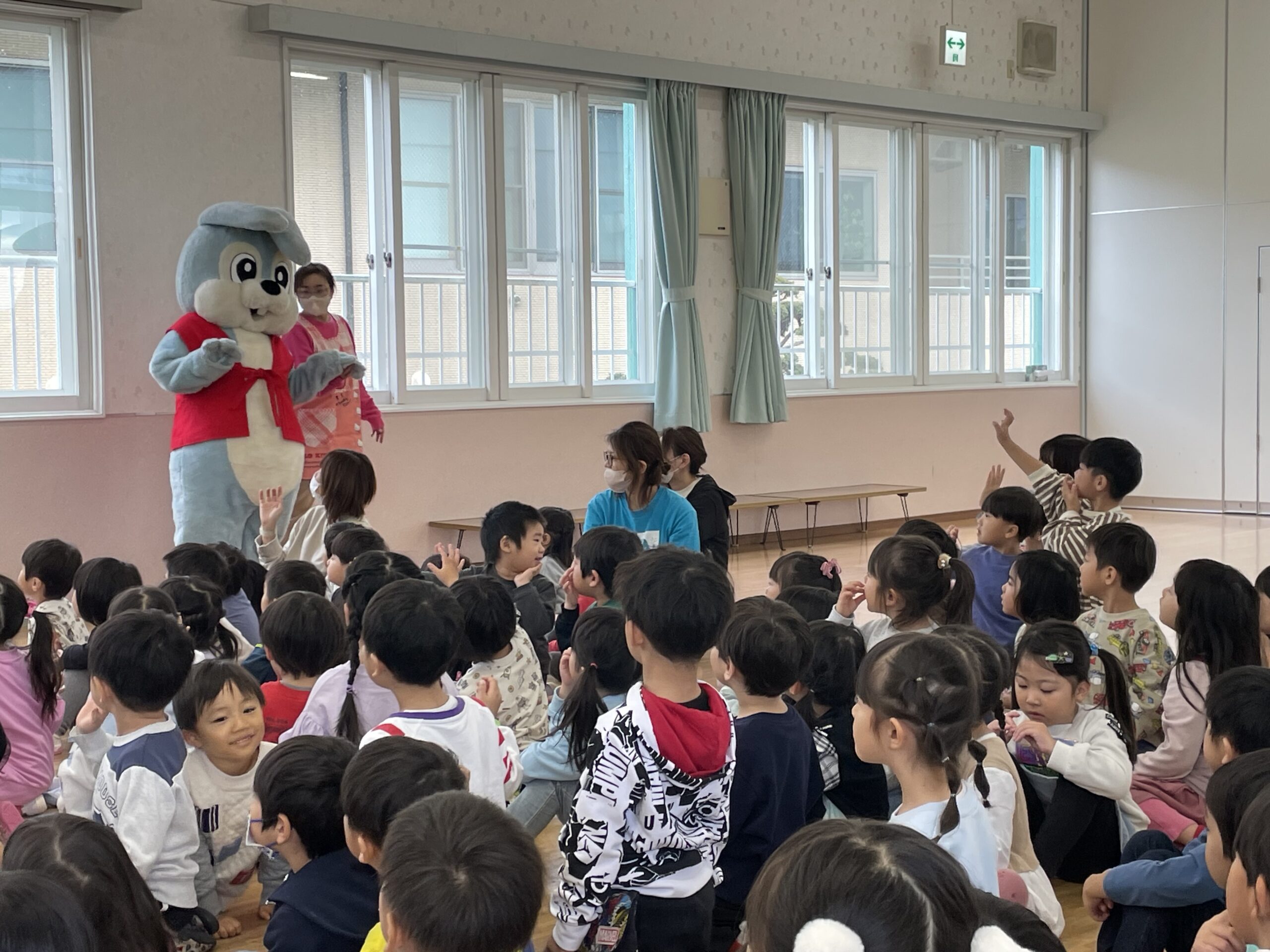 今日のこぐまクラブ🚓では指導員さんの他にもお友だちが来てくれました♪ いったい誰が来てくれたのかワクワク😀ドアが開くのをジーッと待っていると、うさぎのバニーくんが登場🐰バニーくんと一緒に信号🚥や横断歩道のお勉強をしました! 他にも雪が降った時のお約束も教えてもらいましたよ⛄️ 最後の出席シールはみんなでバニーくんに変身して、ぺったんこ!