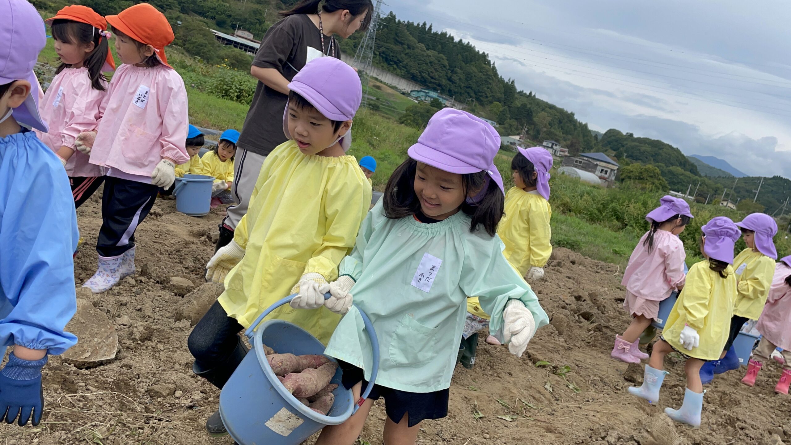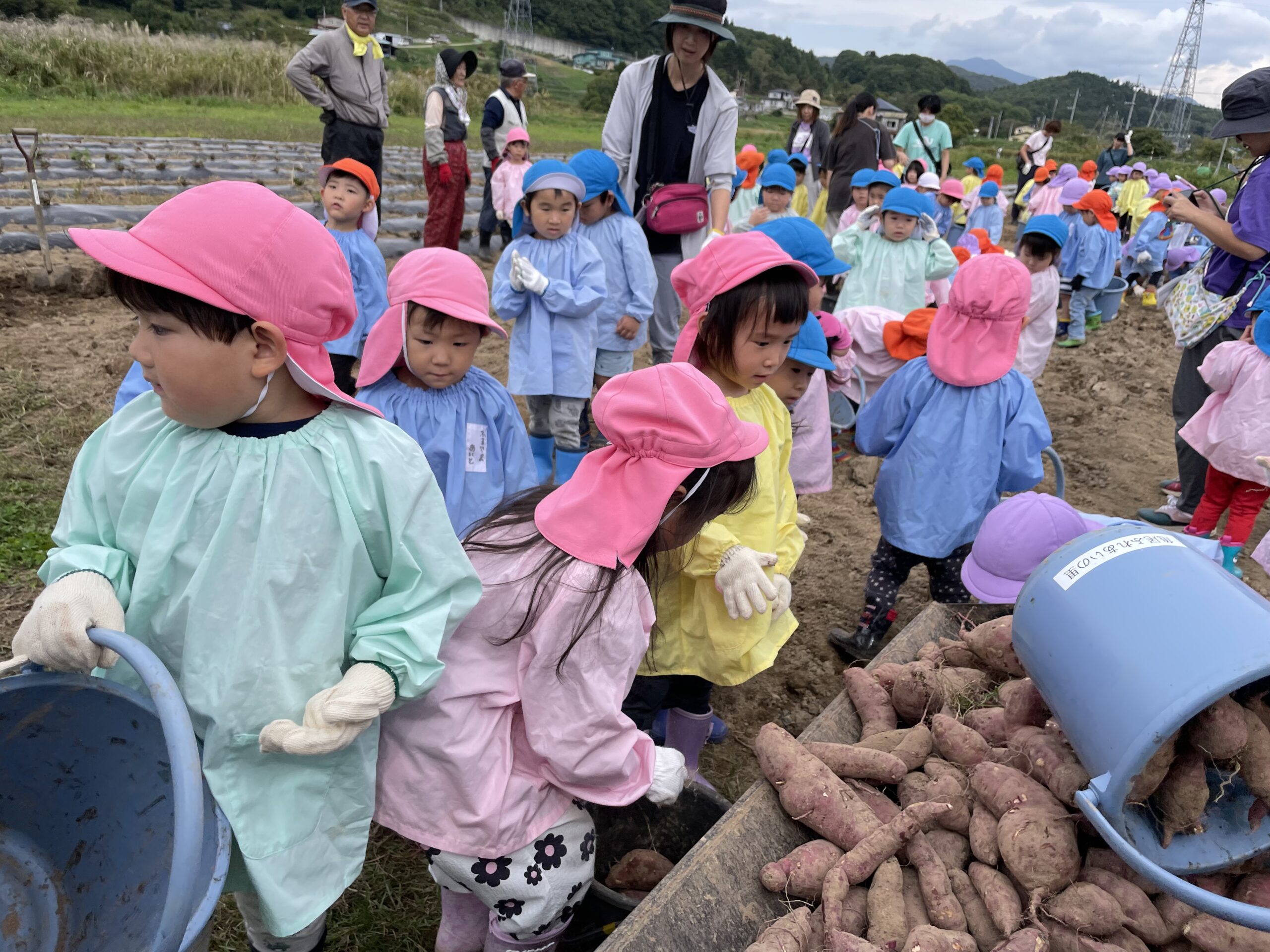 今日は亀尾農園に行きました! 年中組のお友だちが春に種を植えてくれたさつまいも🍠が 農園の人たちに大きく育ててもらいました! 年中組のお兄さんお姉さんと一緒に 年少組も連れて行ってもらいました🍁🍂 たくさんのさつまいも 収穫できました🍠🍠🍠