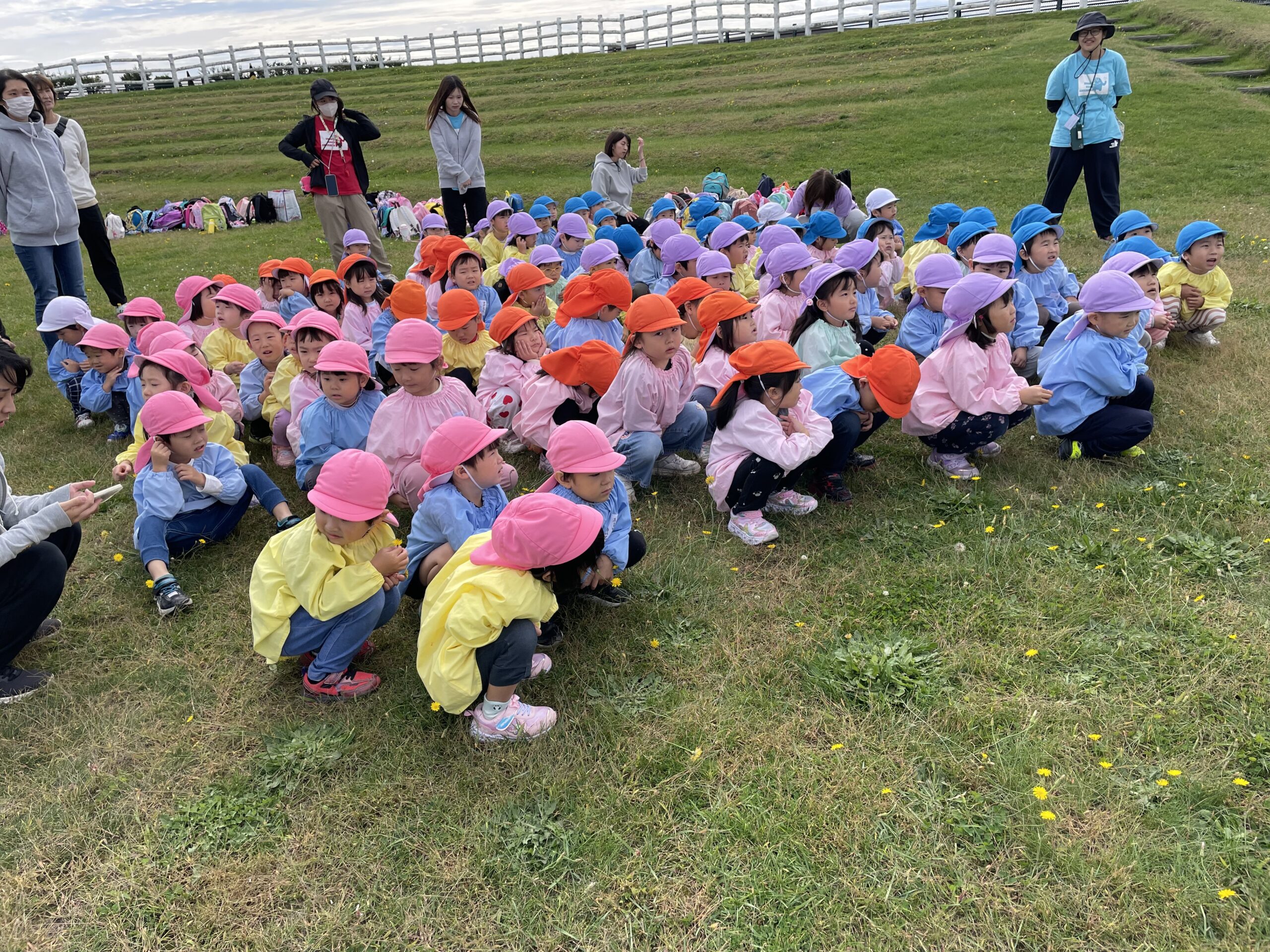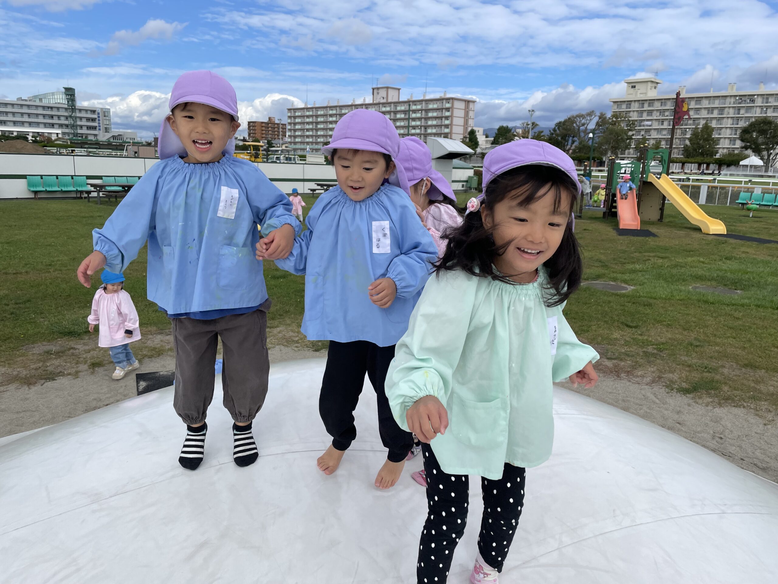 年中(ゆりぐみ、ふじぐみ)年少(さくらぐみ、すみれぐみ)で競馬場の公園に遠足に行ってきました😁 初めて行った年少さんは、大きなトランポリンと大きな遊具に大興奮でした😃🎶 みんな好きな遊びを見つけ夢中になって遊んでいました💕 みんなでお弁当食べて今年最後の遠足を楽しみました😊🎶